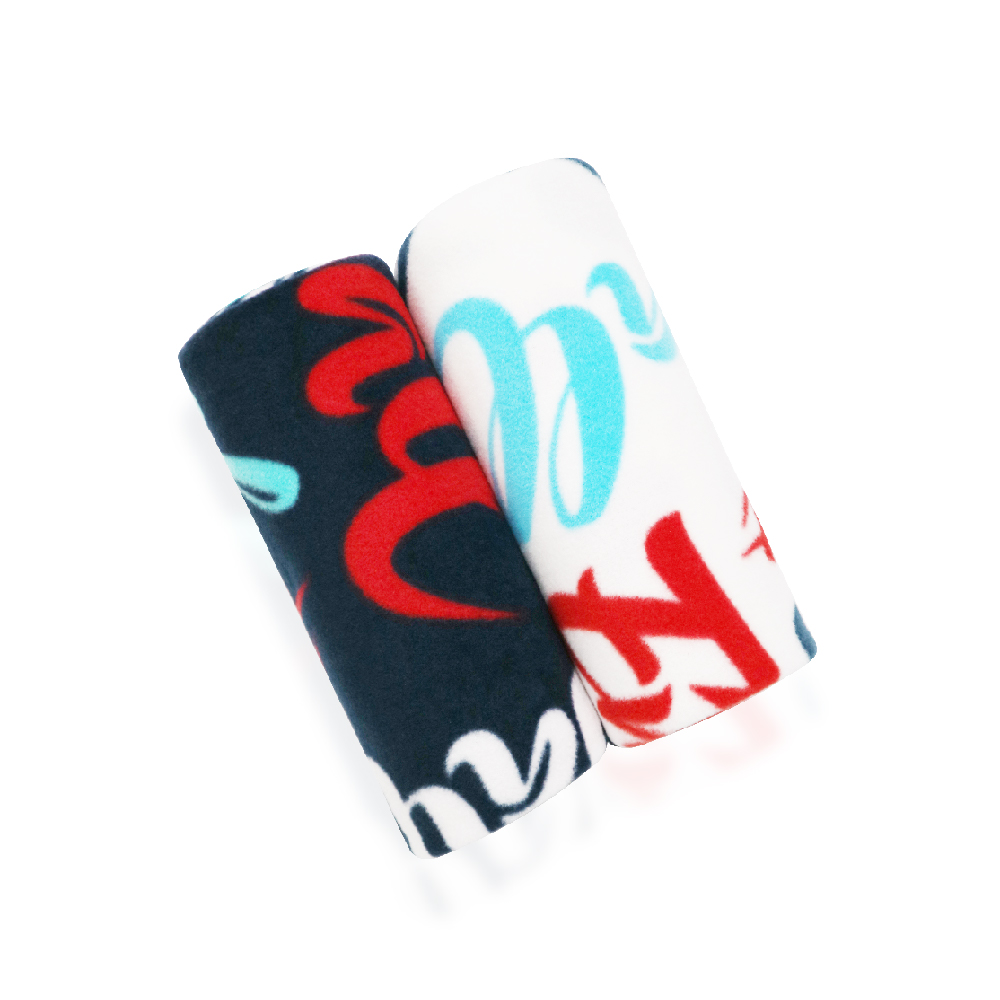 부드러운 재질의 폴라폴리스 느낌 그대로, 원하는 이미지를 나염한 무릎담요입니다. 월스트리트 영어에서 제작한 제품을 촬영했습니다. 색상은 네이비와 화이트 바탕에 텍스트가 나염이 되었습니다. 화려한 텍스트와 색상으로 질리지 않는 디자인입니다. 담요의 가공방법은 바이어스 가공으로 진행되어서 사면이 라운드로 처리되었습니다. 깔끔하게 접히고, 부드럽게 말아서 보관하시면 될것 같습니다.