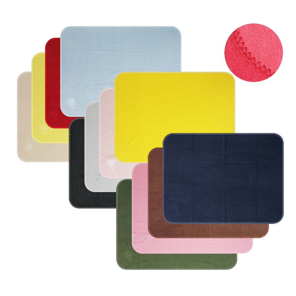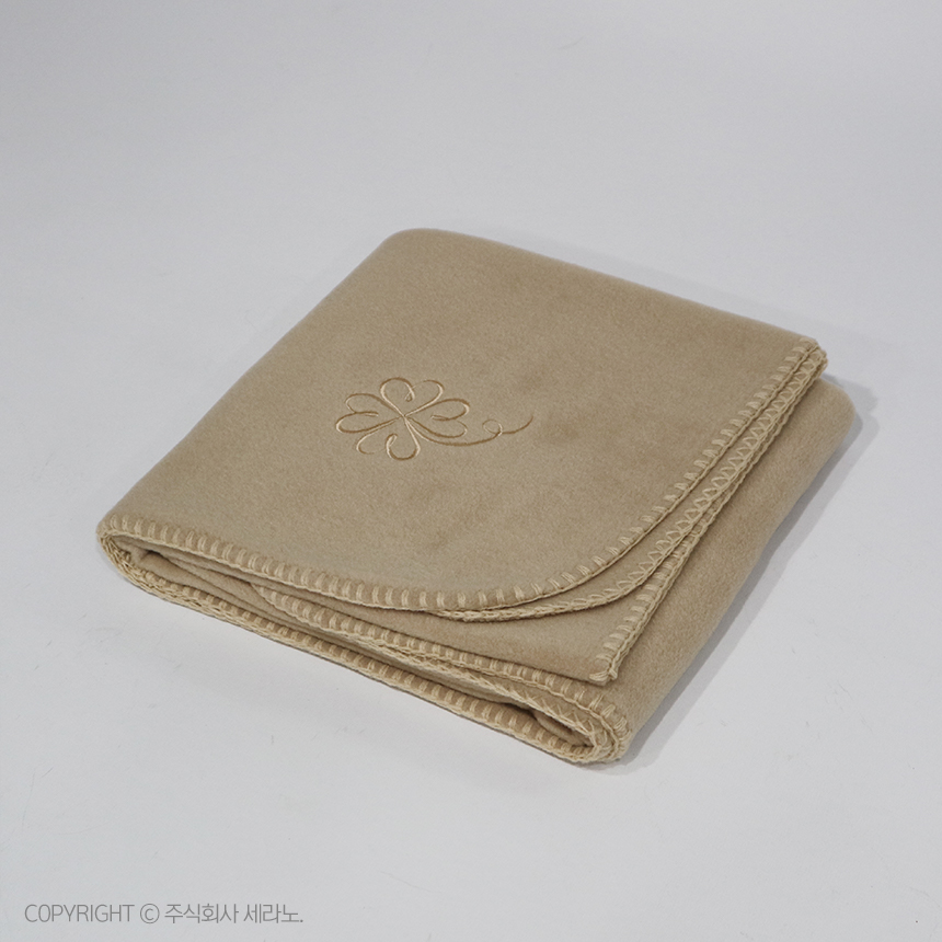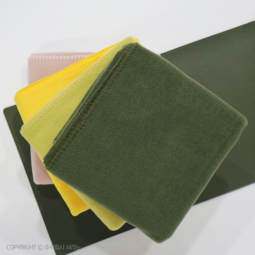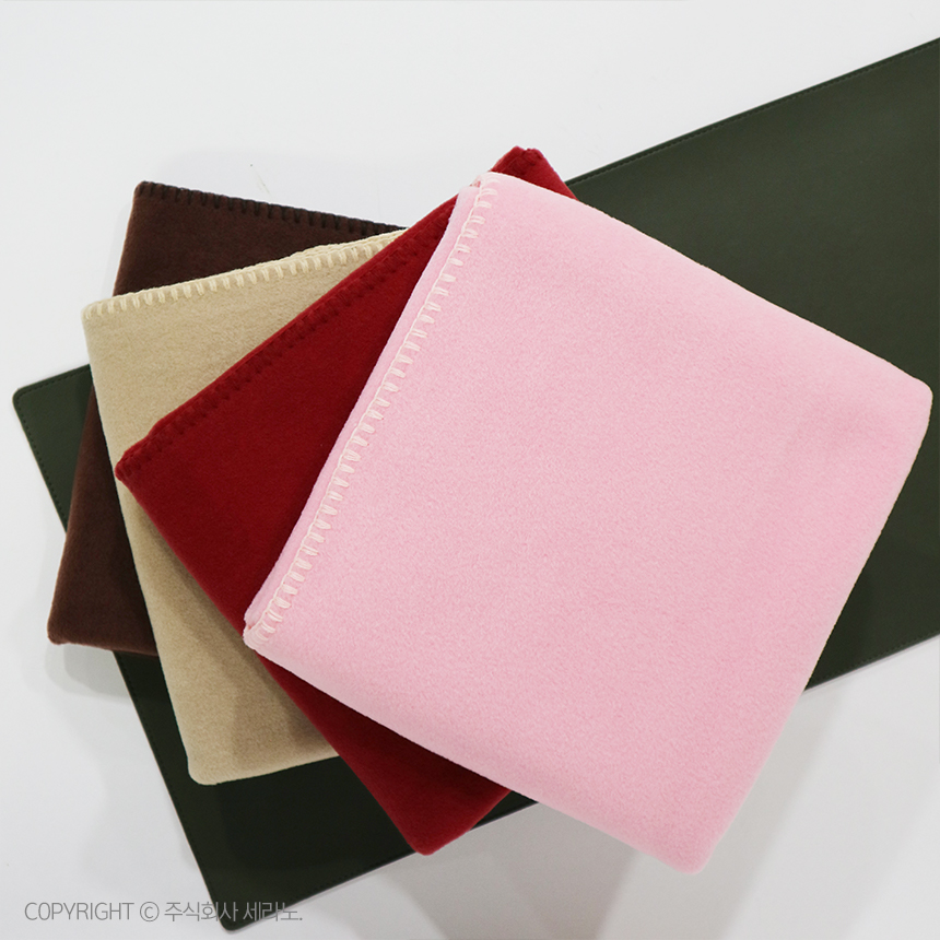 아래는 3가시 색상을 선택해서 모아 봤습니다. 핑크, 옐로우, 베이지 색상으로 한쪽 면에 자수를 넣은 담요입니다. 자수는 여러가지 색상으로 넣을 수도 있지만, 튀지 않게 비슷한 색상으로 자수를 넣었습니다. 기업과 단체의 로고를 자수하셔도 괜찮겠습니다.